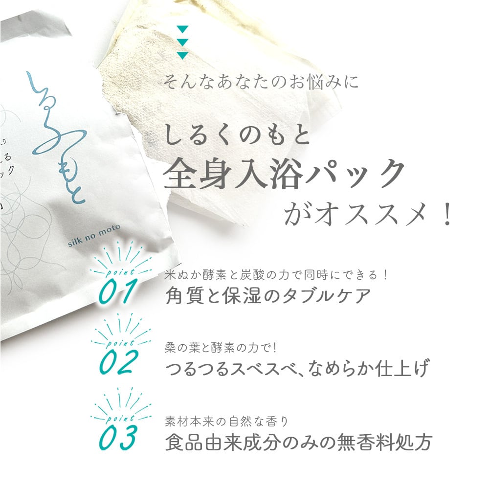 つるつる 肌 と 温浴 を同時に叶える 自然派 全身入浴パック。